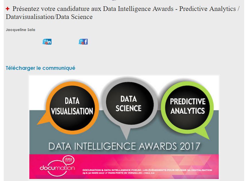 Les Trophées Data Intelligence Awards sont destinés à récompenser tout logiciel, initiative, processus, service ou solution, relatifs au domaine de la Data Intelligence !